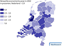 Economische groei binnen de kaders van gelijke brede welvaart blijft belangrijk om alle investeringen in de energietransitie, woningbouw en onderwijs te financieren. RaboResearch Economie voorspelt voor Nederland voor 2022 een economische groei van 2,9%. Regionale verschillen zijn groot. Groot Amsterdam, waar ook Schiphol onder valt, groeit het hardst met 4,4%. Deze regio is hard geraakt door de coronapandemie, maar zet het herstel van 2021 sterk door en profiteert door een hoge dichtheid van bedrijven en mensen en een gunstig ondernemingsklimaat met agglomeratievoordelen.