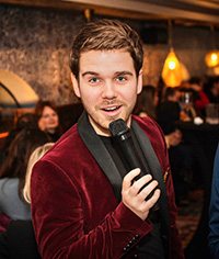 • Thijs Swinkels verzorgt eerst ingetogen en daarna swingend het entertainment