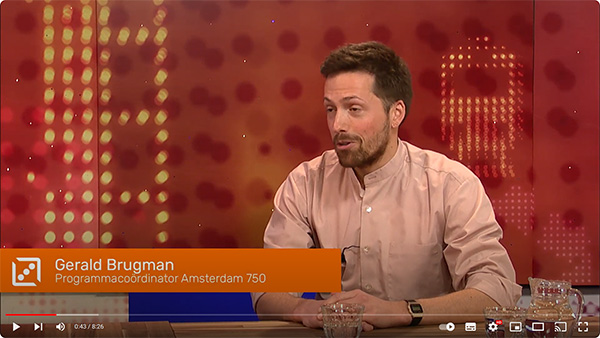Gerald Brugman is programmacoördinator Amsterdam750. Hij gaat het hebben over de inmiddels al 200 evenementen (groot en klein), die op het programma staan. Vergeet je agenda er niet bij te pakken?!?